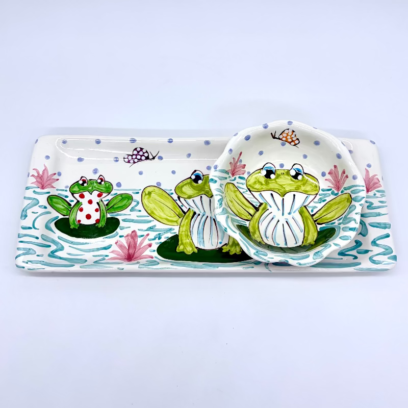 Our Appetizer Bundle features one bread tray and one dessert bowl from the Frogs Collection.