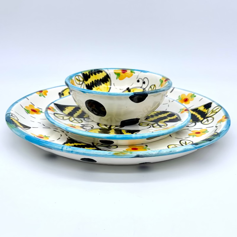 Our Entertainer Bundle features one 12-inch plate, one 8-inch plate, and one dessert bowl from the Bees Collection.