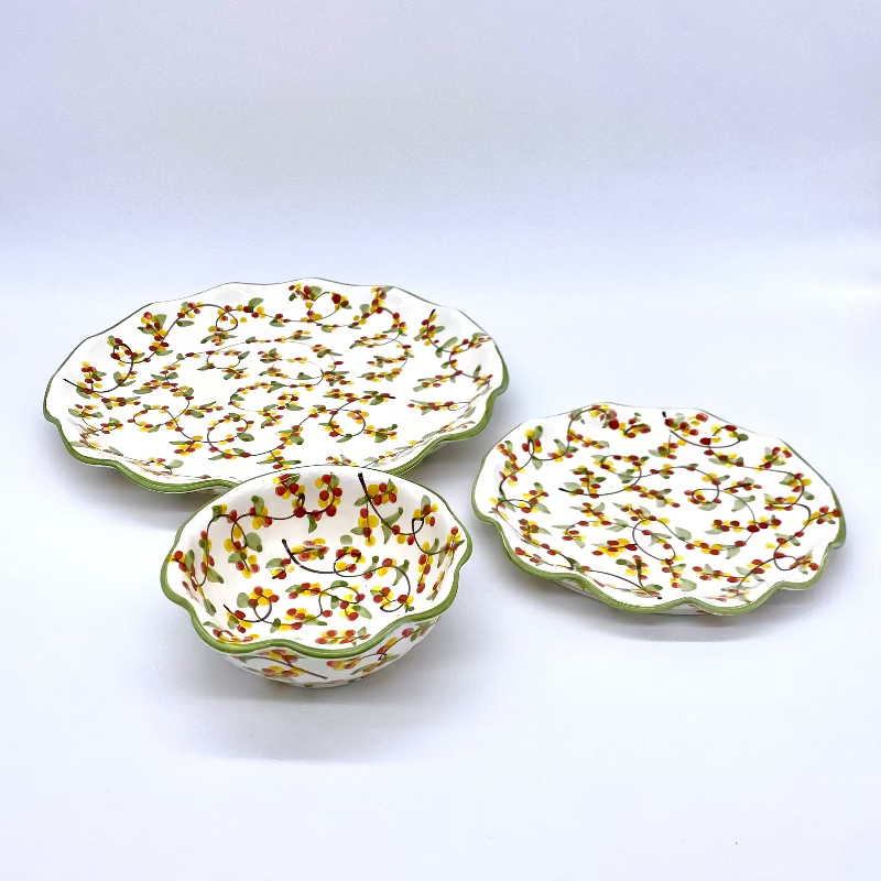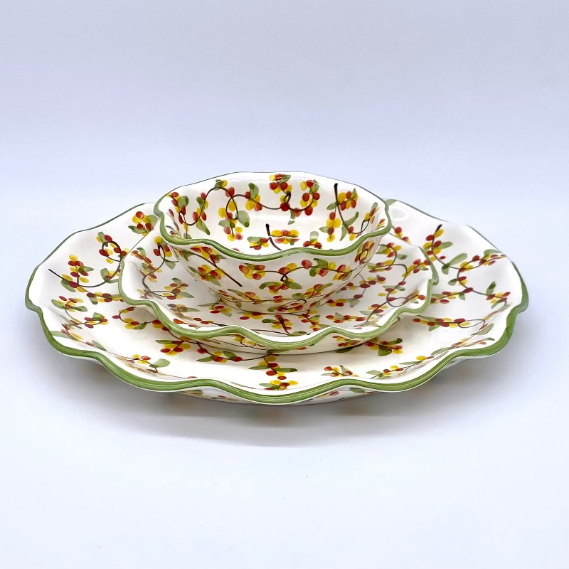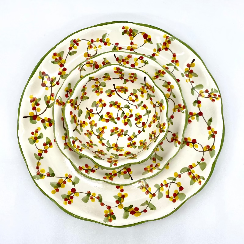 Our Entertainer Bundle features one 12-inch plate, one 8-inch plate, and one dessert bowl from the Blue Hydrangea Collection.