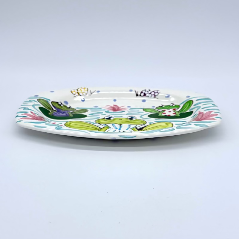 Butterflies befriend happy little frogs to create a carefree scene that can be enjoyed all year long.