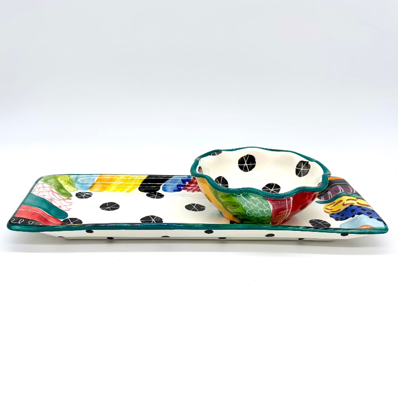 Our Appetizer Bundle features one bread tray and one dessert bowl from the Julie Stripe Collection.