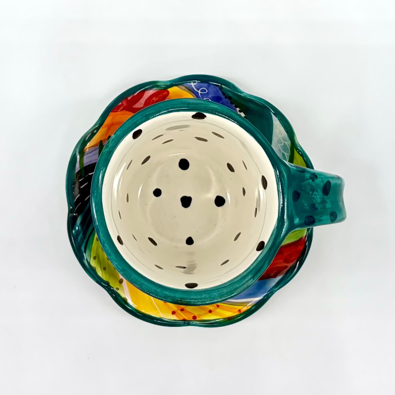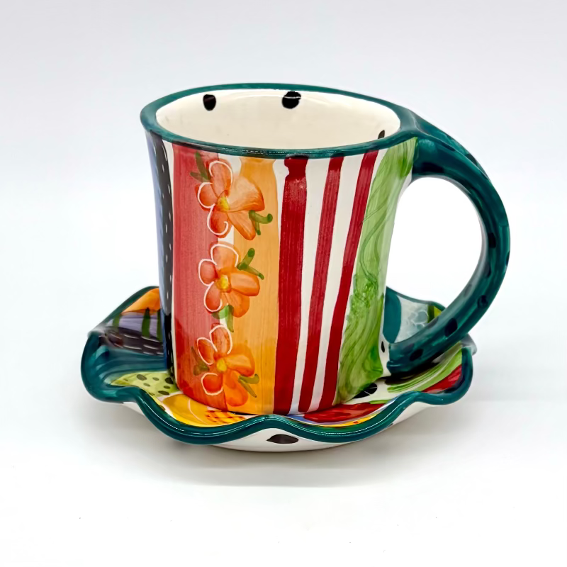 Our Mug and Saucer Bundle features one Mug and one Saucer Plate from the Julie Stripe Collection.