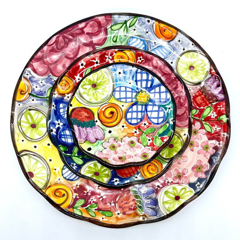 A 12-inch plate is ideal for entertaining and decorating. This plate pairs well with a matching dessert bowl for veggies & dip, and even chips & salsa.