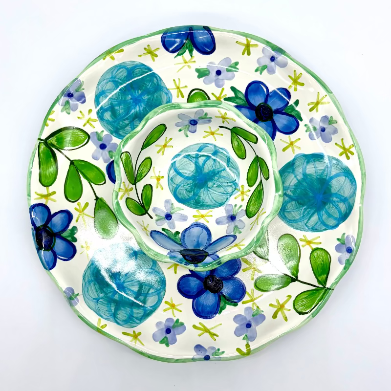 Our Serving Bundle features one 12-inch plate and one dessert bowl from the Black and White Dot Collection. This dynamic duo is perfect for dips, chips & salsa, and other appetizers.