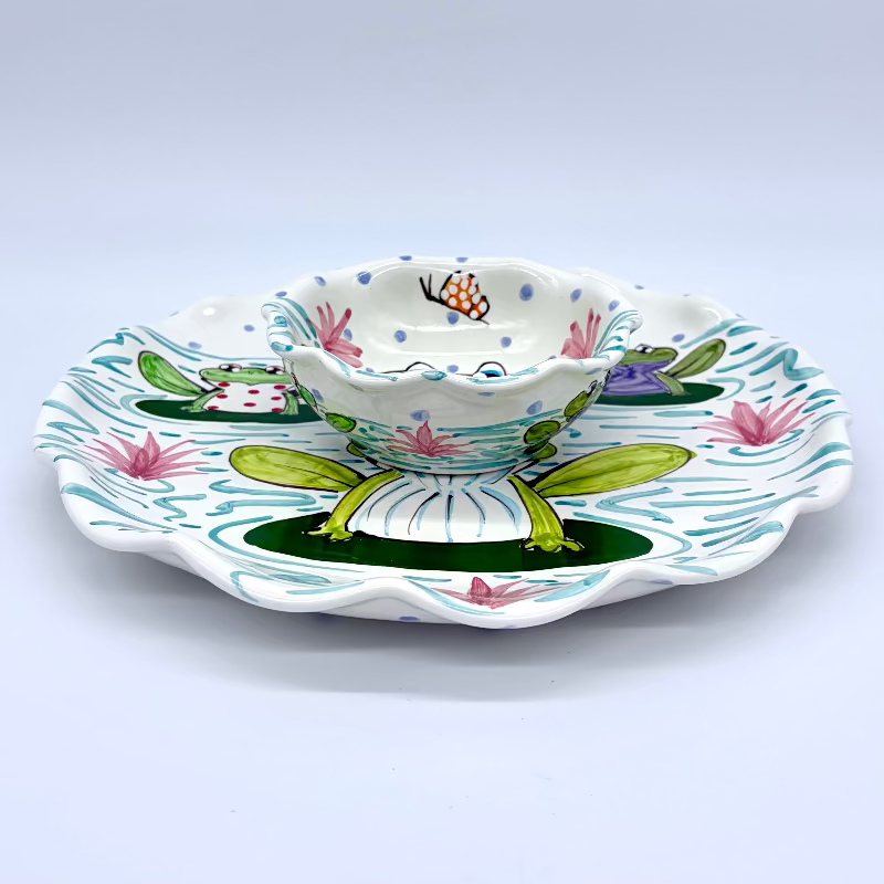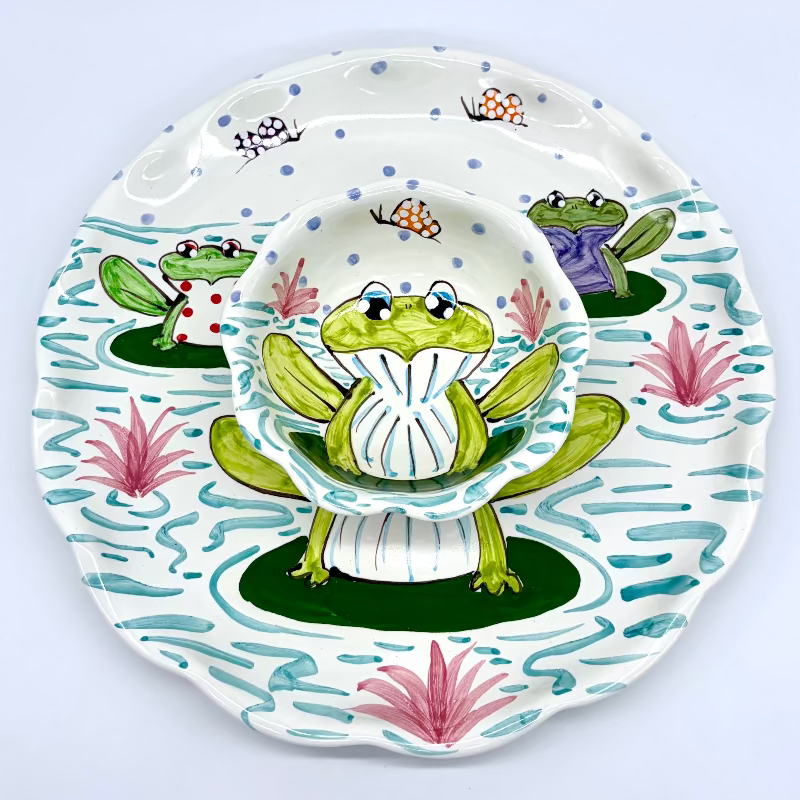 Butterflies befriend happy little frogs to create a carefree scene that can be enjoyed all year long.
