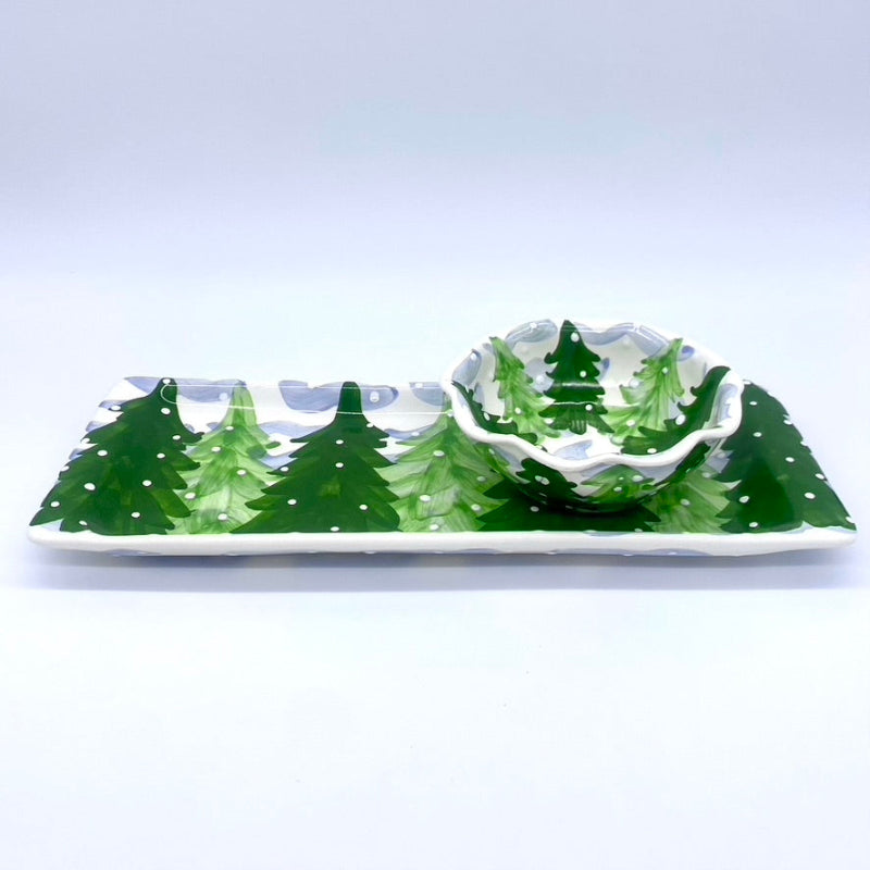 Our Appetizer Bundle features one bread tray and one dessert bowl from the Snowy Trees Collection.