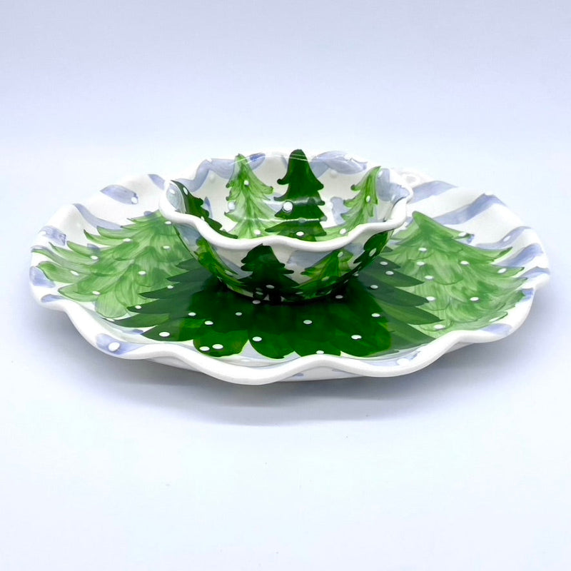 Our Serving Bundle features one 12-inch plate and one dessert bowl from the Snowy Trees Collection. This dynamic duo is perfect for dips, chips & salsa, and other appetizers.